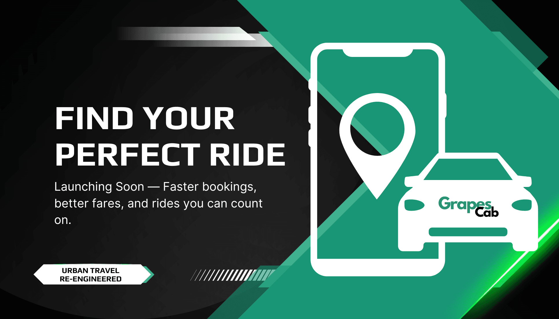 Be among the first to experience Grapes Cab — a city-wide ride network combining safety, comfort and transparent pricing for everyday travel.